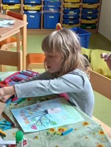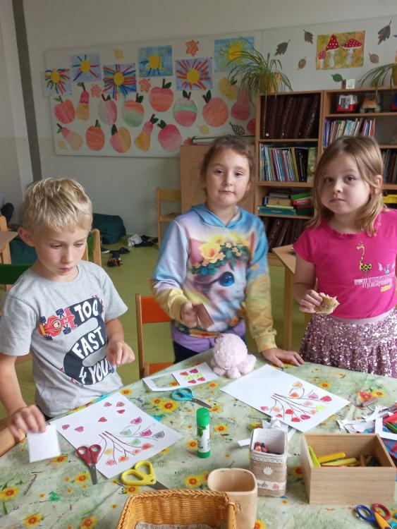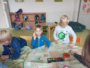 06.11.2025Říjen je barevný měsíc a barvičky nám oživily také družinu, malujeme jablíčka, listy, ale i pavučiny a dýně. Vyrobili jsme si pavoučky a podzimní zápichy. Podzimní příroda nás několikrát vylákala na vycházku, ale ještě si užíváme i zahradu. Hodně si povídáme a stále si opakujeme pravidla, která potřebujeme ve družině i ve škole. Při pravidelné návštěvě knihovny jsme zjistili, že naše ptáčátko určitě nebude poštolka, uvidíme, co se nám z něho vyklube.