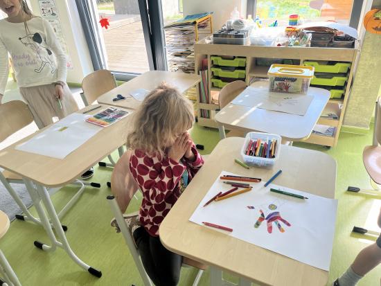 S dětmi neustále tvoříme, kreslíme obrázky s podzimní tématikou. Společně jsme si také v rámci Karet ctností přiblížili první ctnost, vytvořili jsme si naše družinové srdce přátelství.