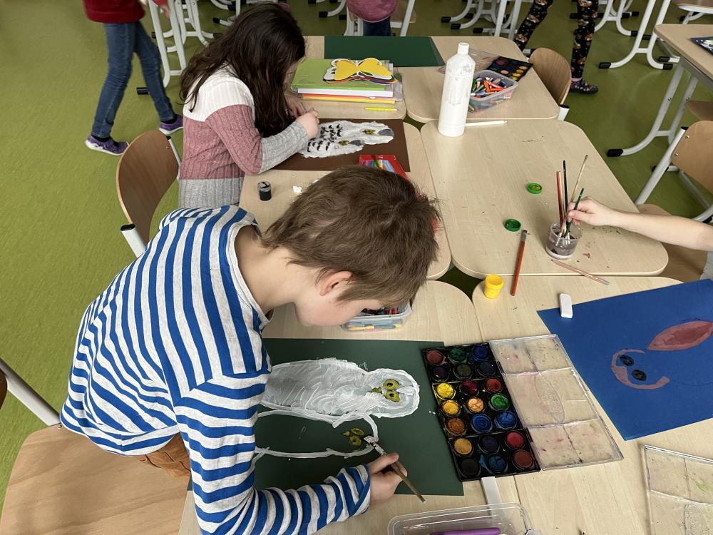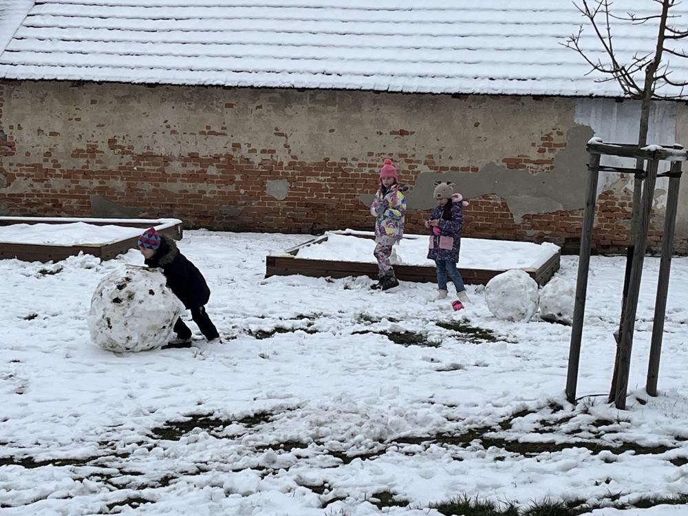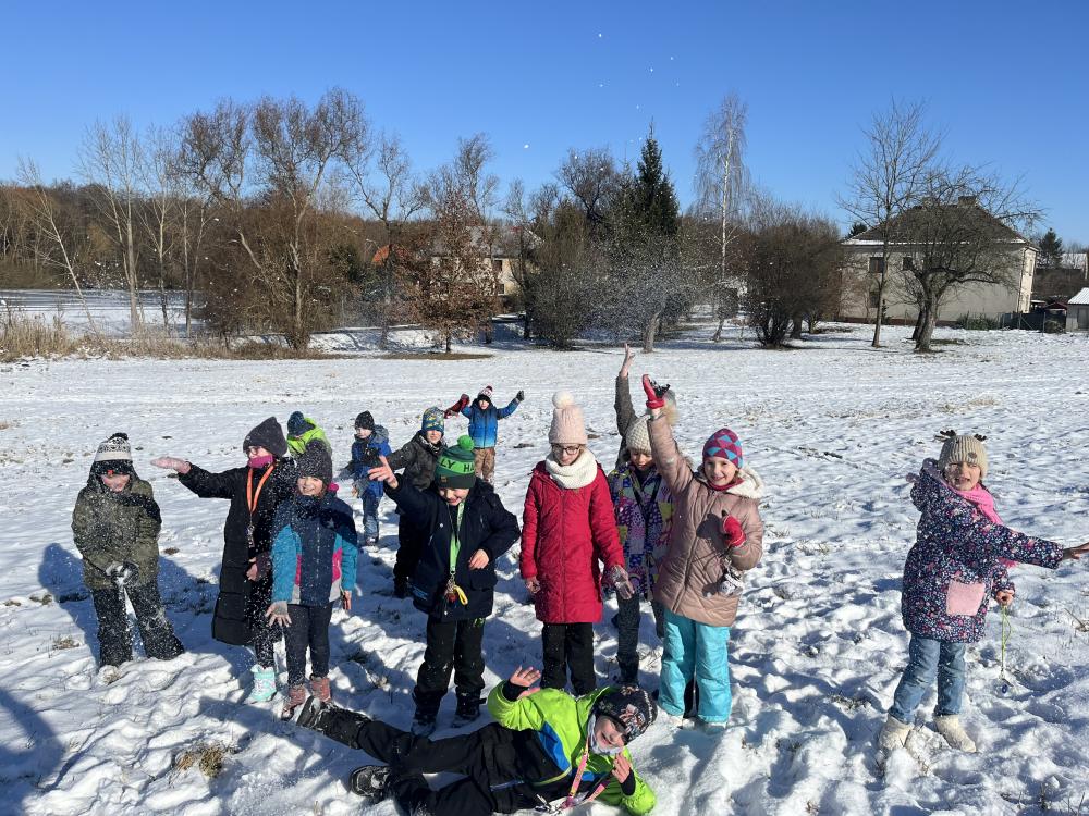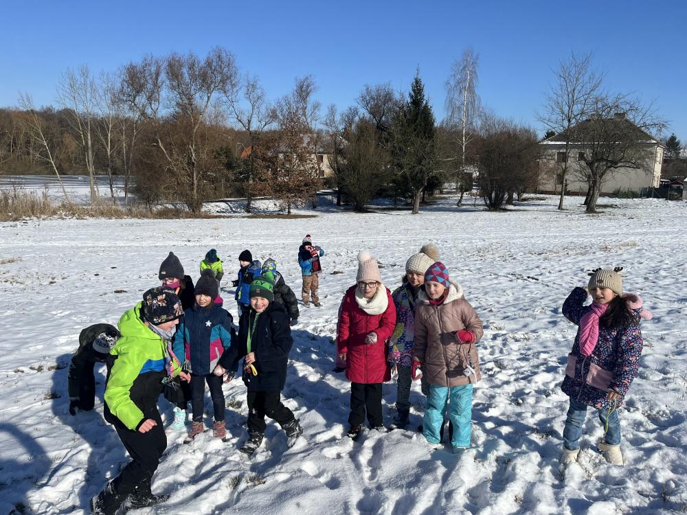 Únor se konečně ukázal jako pravý zimní měsíc s malou sněhovou nadílkou a mrazivým počasím. Na vycházkách se děti vyřádily ve sněhu, pozorovaly kachny na rybníku a sypaly ptáčkům do krmítka. Na školní zahradě se objevilo několik sněhuláků a staveb ze sněhu.