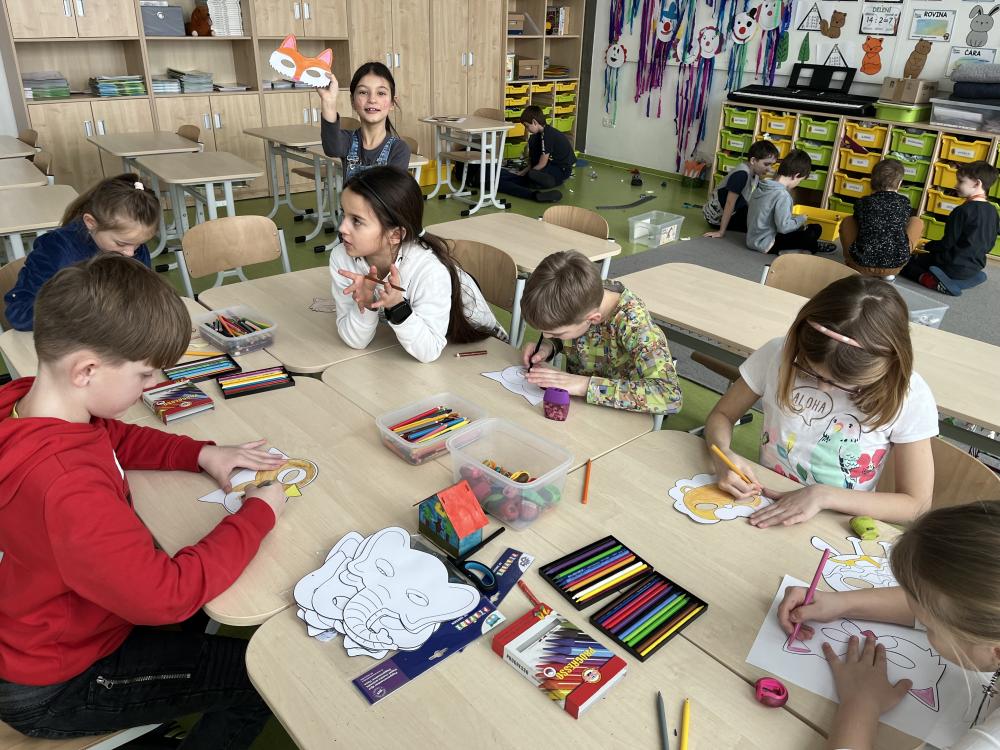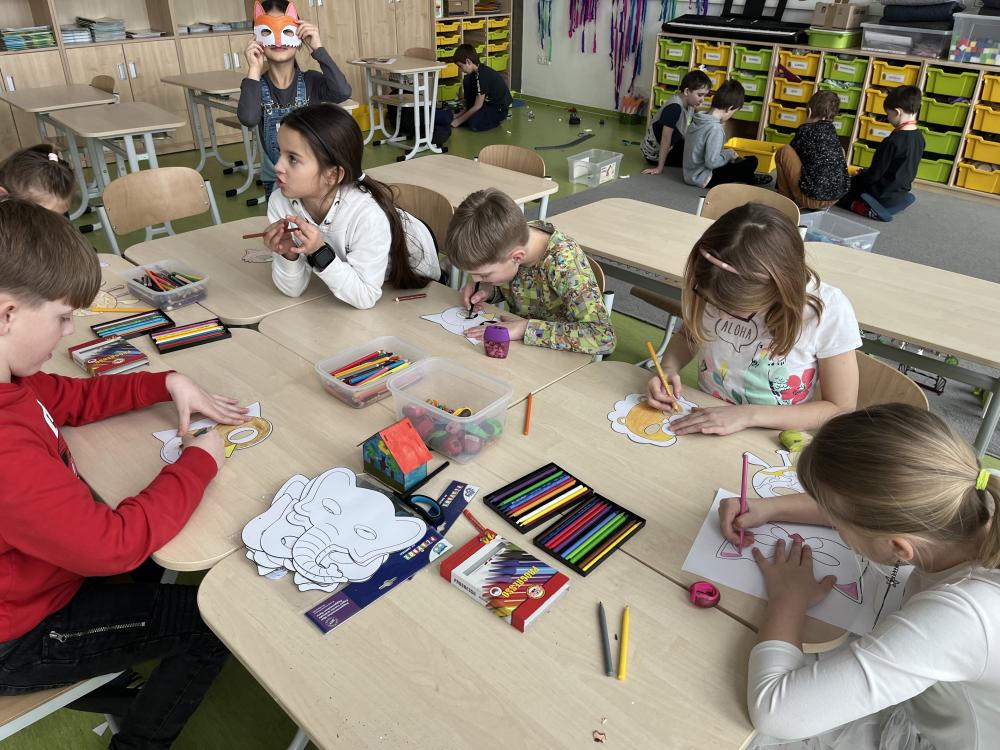 Také se stále zdokonalujeme v háčkování. Povídáme si o pranostikách, masopustu, vyrobili jsme si karnevalové masky.
