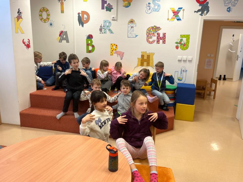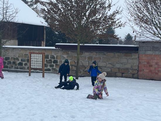 Konečně jsme se dočkali sněhové pokrývky, na zahradě jsme stavěli sněhuláky a zažili pravou koulovačku. Vyrobili jsme si hezké dekorace, povídali si o zvířátkách v zimě, sypali jsme do krmítka ptáčkům. Také jsme navštívili knihovnu, kde pro nás měla paní knihovnice připravenou další pohádku o ptáčkovi a hledání jeho maminky, dostali jsme úkol. Při vycházkách jsme pozorovali kachny na rybníce.