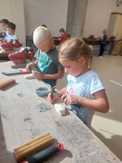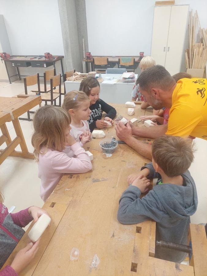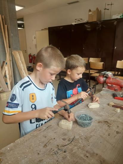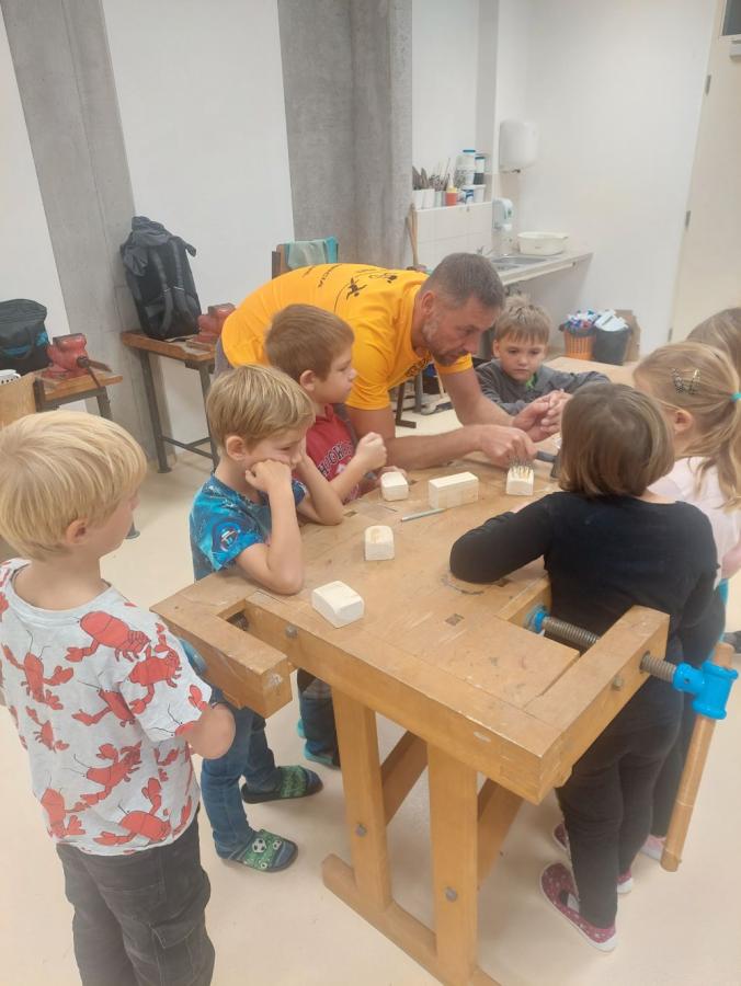 S velkým nadšením si pak každý malý řemeslník vytvořil svého vlastního dřevěného ježečka. Děti si vyzkoušely práci se dřevem, hřebíky i kladívkem, a navíc si odnesly krásný výrobek, na který mohou být právem pyšné.