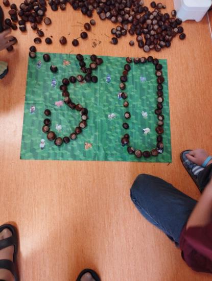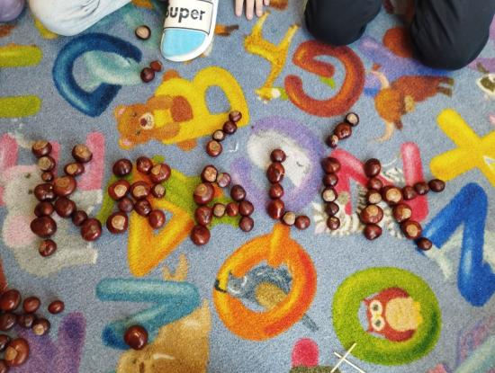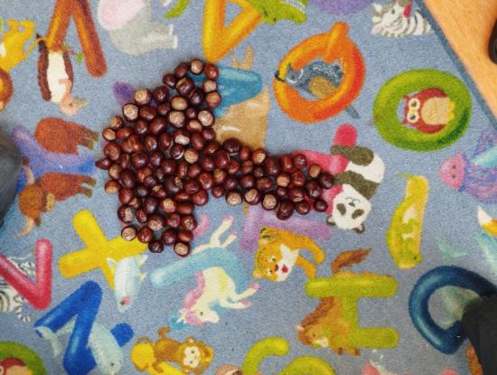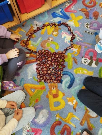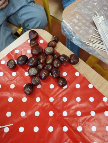 V rámci pracovních činností jsme si pohráli s podzimní úrodou kaštanů. Nejdříve jsme si vylosovali skupinky a skládali písmena, potom slova -pes, les, králík. A nakonec se ve skupinkách se zaujetím skládaly obrázky- sluníčko, strom, keř, dům. Celou hodinu druháčci pracovali se zájmem a z výsledného obrázku měli velkou radost!