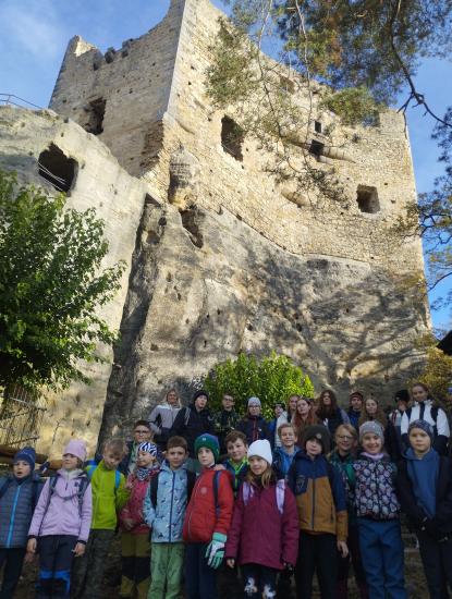 Společně s 9. třídou jsme se vydali poslední říjnový den na Valečov. Počasí se nám vydařilo - celou cestu nás provázelo krásné podzimní sluníčko. Šikovní druháčci navázali přátelství se zkušenými deváťáky.