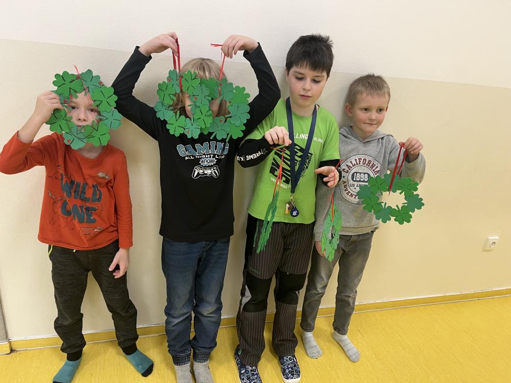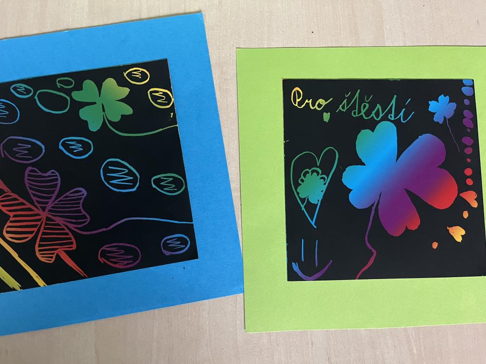 Tentokrát jsme byli osloveni, zda bychom se zapojili do akce Štěstí nemocným. Naším úkolem bylo vyrobit, nakreslit či jinak ztvárnit různé čtyřlístky pro štěstí. Čtyřlístky budou v rámci Mezinárodního dne nemocných rozdány pacientům v nemocnici s přáním brzkého uzdravení.
