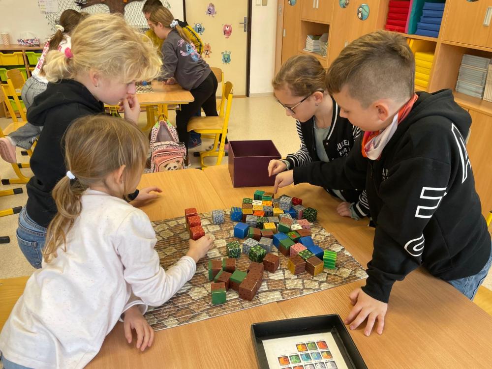 Zjistili například, jak vzniká sklo, kde se ve skutečnosti nachází jíl a k čemu se využívá. Trénovali paměť, vymýšleli různé strategie a především stavěli objekty. Žáci tak prokázali, že dokáží pracovat v týmu a že ovládají řadu anglických slovíček, se kterými se ve hře běžně setkávají.