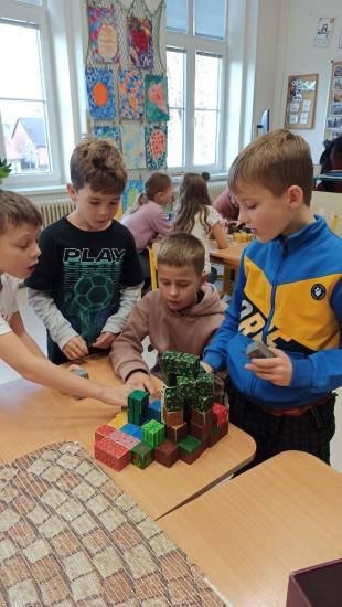 Dne 21. 11. se žáci 3. tříd na dvě vyučovací hodiny přenesli do světa hry Minecraft. Dozvěděli se, v čem je tato hra přínosná, ale také na jaké riziko je třeba si dát pozor. Během programu si procvičili matematické dovednosti a získali mnoho nových poznatků z oblasti živé i neživé přírody.