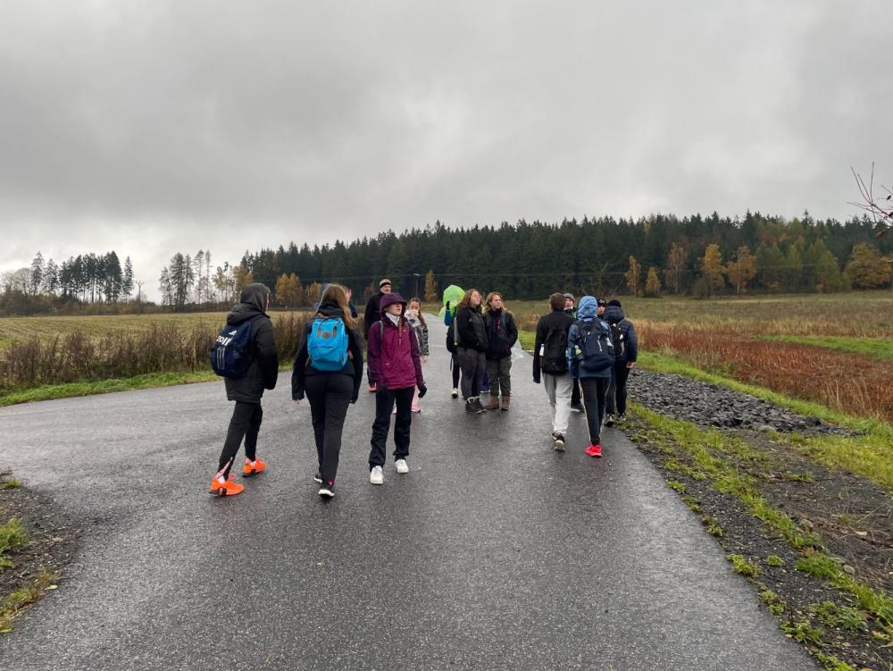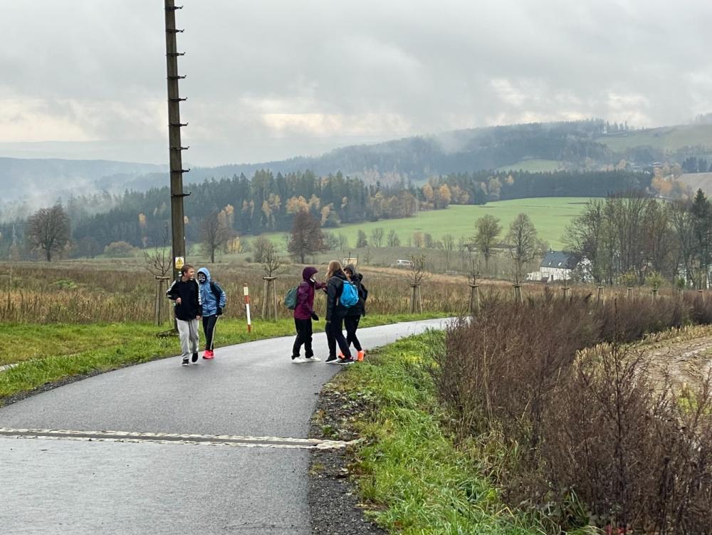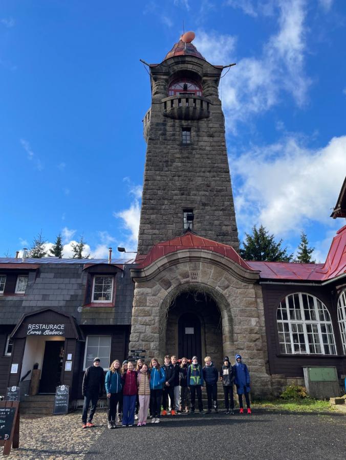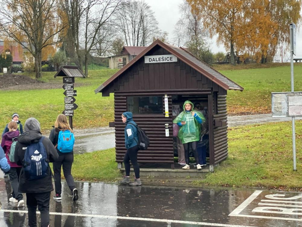 Ve čtvrtek 30.10. jsme se vydali se třídou 8.A na 17 kilometrový výlet z Rychnova u Jablonce nad Nisou přes Černou studnici do Tanvaldu. Dopoledne nás přivítal vytrvalý déšť, který proměnil cesty v blátivé stezky a prověřil kvalitu našich pláštěnek. I přes nepřízeň počasí jsme se nenechali odradit a vytrvale stoupali vzhůru. Na vrcholu se však počasí umoudřilo, objevilo se slunce a zbytek cesty jsme si užili v krásném podzimním počasí s výhledy na Jizerské hory. I když jsme dorazili unavení, výlet měl výbornou atmosféru a stál za to.