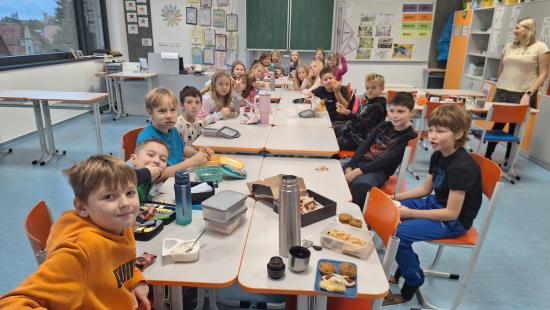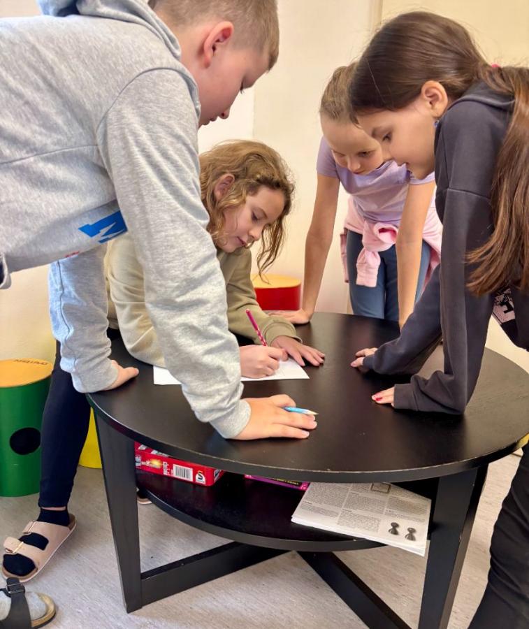 Čtvrťáci prožili den, kdy se škola proměnila v místo plné hádanek i zašifrovaných úkolů. Společnou snídaní začalo dopoledne, které pokračovalo besedou v knihovně s milou spisovatelkou Michaelou Fišarovou. Poté se děti přesunuly do auly, kde doslova prolézaly stezkou v halloweenském hávu, řešily úkoly a sbíraly tajná slova i kódy pro své závěrečné zaklínadlo. Celý program završil tanec plný rytmu i dobré nálady.
