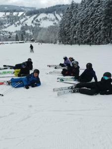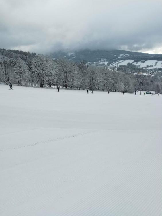 18.02.2026Dnes jsme se probudili do krásného zimního dne. První a druhé družstvo vyrazilo na Lysou horu. Třetí a čtvrté družstvo vyšlo na sjezdovku Pařez, kde jsme měli celou sjezdovku téměř sami pro sebe. Lyžování bylo krásném, bílém manžestru z nového sněhu. Po obědě jsme vyrazili na malou, odpočinkovou vycházku do Rokytnice a trochu si užít přírodního sněhu. Po návratu následoval hokej a užili si fandění. Zítra celý kurz čeká Lysá.