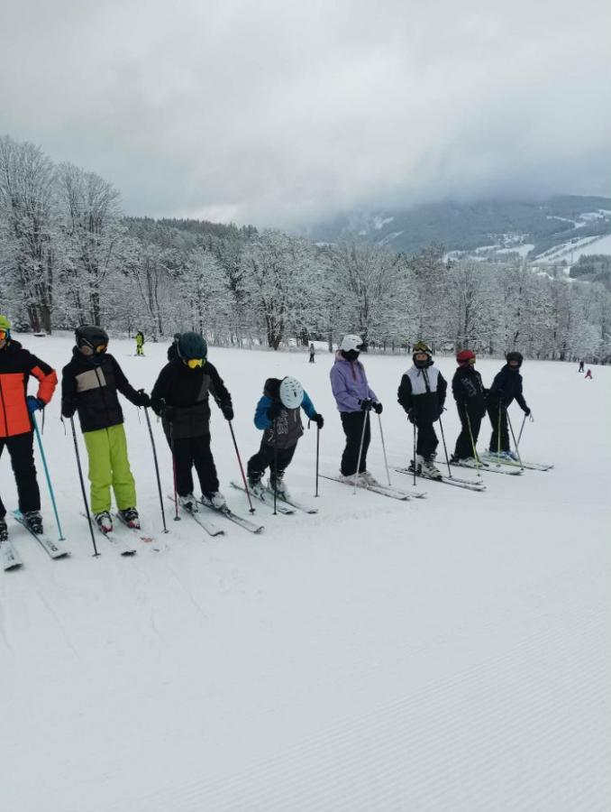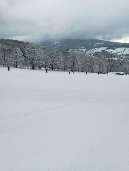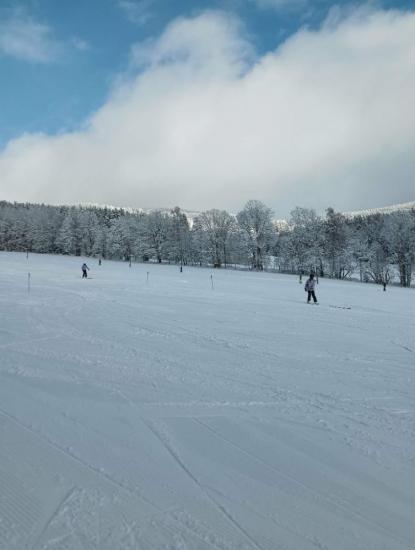 Dnes jsme se probudili do krásného zimního dne. První a druhé družstvo vyrazilo na Lysou horu. Třetí a čtvrté družstvo vyšlo na sjezdovku Pařez, kde jsme měli celou sjezdovku téměř sami pro sebe. Lyžování bylo krásném, bílém manžestru z nového sněhu. Po obědě jsme vyrazili na malou, odpočinkovou vycházku do Rokytnice a trochu si užít přírodního sněhu. Po návratu následoval hokej a užili si fandění. Zítra celý kurz čeká Lysá.