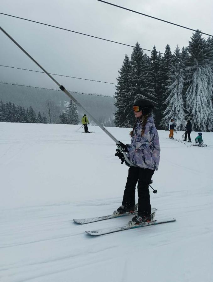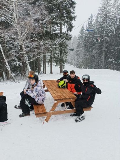 Dnes jsme s většinou kurzistů vyjeli na Lysou horu. Téměř celou noc padal sníh a tak 5 cm nového sněhu vytvořilo krásnou zimní idylku. I na Lysé jsme byli rozděleni na tři družstva a lyžování jsme přizpůsobili možnostem těchto družstev. I třetí družstvo však bez větších potíží sjet celou Lysou.