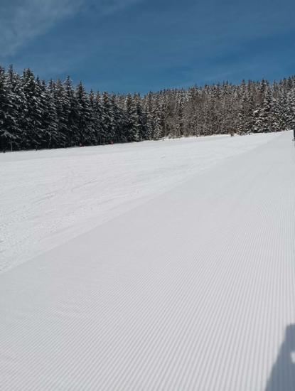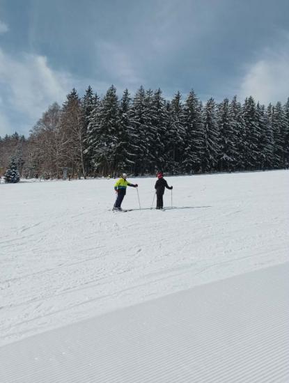 Poslední den lyžování a nádherné zimy na Pařezu probíhal ve znamení pohodového lyžování a přátelských soutěží. Po obědě vyrážíme do Rokytnice, kam přijede autobus. Celý kurz proběhl v klidu a bez úrazu. Všichni lyžují skvěle.